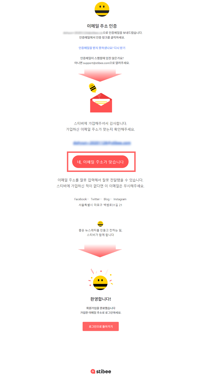 스티비를 사용하려면 가장 먼저 회원가입을 통해 스티비에서 사용할 계정을 만들어야 합니다. 이메일 주소와 연락처 그리고 몇 가지 추가 정보만 입력하면, 인증 과정을 거쳐 회원가입이 완료됩니다.
